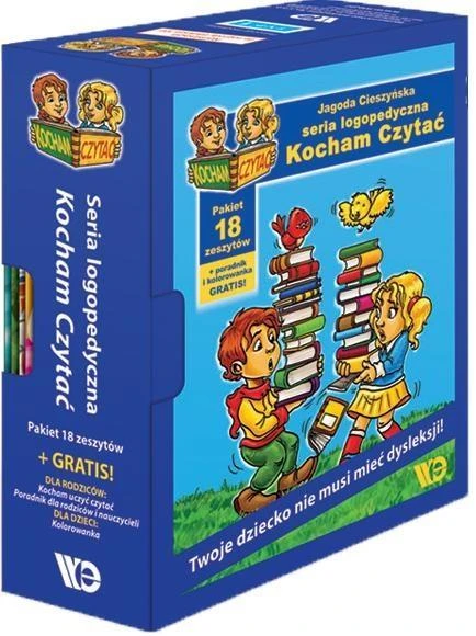 Seria logopedyczna: do wczesnej nauki czytania dla dzieci w wieku przedszkolnymoraz starszych zagrożonych dysleksją, z wadami wymowy pakiet 18 zeszytów pozwala dziecku: poznać wszystkie litery polskiego alfabetu, wcześnie rozpocząć naukę czytania, zwiększać zasób słownictwa, opanować sztukę czytania ze zrozumieniem, uczyć się języków obcych, nauczyć się w przyszłości pisowni trudnych wyrazów.TWOJE DZIECKO NIE MUSI MIEĆ DYSLEKSJI!!!