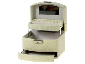 kuferek, szkatułka na biżuterię, automatycznie wysuwane szufladki, z lusterkiem; 15x12x11cm, Box