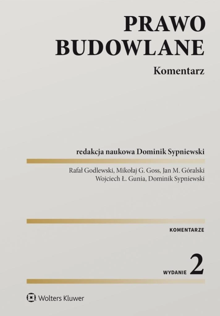 Książka zawiera praktyczną interpretację przepisów prawa budowlanego ze szczególnym uwzględnieniem zagadnień, takich jak: projekt budowlany (i konsekwencje jego podziału na trzy części: zagospodarowania działki lub terenu, architektoniczno-budowlany, techniczny), katalog obiektów budowanych na podstawie: pozwolenia na budowę, zgłoszenia lub bez konieczności dopełniania tych wymogów, procedura legalizacji samowoli budowlanych, obowiązki właściciela lub zarządcy obiektu budowlanego. W drugim wydaniu komentarza autorzy omawiają najnowsze zmiany legislacyjne dotyczące w szczególności dalszego uproszczenia procesu inwestycyjnego w zakresie odnawialnych źródeł energii oraz telekomunikacji, a także wzmocnienia ochrony strategicznych systemów przesyłowych. Obecne wydanie komentarza zawiera około 30 zmian w prawie budowlanym od poprzedniego wydania komentarza, np: 1. ustawa z 21.11.2024 r. o zmianie ustawy - Prawo energetyczne oraz niektórych innych ustaw (Dz.U. poz. 1881). Projektowanie obiektu budowlanego i kierowanie robotami budowlanymi związanymi z obiektem budowlanym Budowa wymagająca zgłoszenia Budowa nie wymagająca decyzji o pozwoleniu na budowę ani zgłoszenia Roboty budowlane wymagające zgłoszenia 2. ustawa z 27.11.2024 r. o zmianie ustawy o odnawialnych źródłach energii oraz niektórych innych ustaw (Dz.U. poz. 1847). Roboty budowlane wymagające zgłoszenia Kara za zwłokę w wydaniu decyzji 3. ustawa z 12.07.2024 r. Przepisy wprowadzające ustawę - Prawo komunikacji elektronicznej (Dz.U. poz. 1222). Instalowanie punktów dostępu bezprzewodowego o bliskim zasięgu Budowa i przebudowa przenośnych wolno stojących masztów antenowych 4. ustawa z 15.05.2024 r. o zmianie niektórych ustaw związanych z funkcjonowaniem administracji rządowej (Dz.U. poz. 834). Nowelizacja objęła przepisy dotyczące decyzji o pozwoleniu na budowę lub rozbiórkę obiektu budowlanego. 5. ustawa z 17.08.2023 r. o zmianie ustawy o odnawialnych źródłach energii oraz niektórych innych ustaw (Dz.U. poz. 1762). Ustalono, że nie wymaga decyzji o pozwoleniu na budowę oraz zgłoszenia wykonywanie robót budowlanych polegających na instalowaniu pomp ciepła, wolno stojących kolektorów słonecznych, urządzeń fotowoltaicznych o mocy zainstalowanej elektrycznej nie większej niż 150 kW (a nie jak dotychczas 50 kW). 6. ustawa z 28.10.2020 r. o zmianie ustawy o wspieraniu termomodernizacji i remontów oraz niektórych innych ustaw (Dz.U. poz. 2127). Przepisy dodane do ustawy określają, że protokół z kontroli przewodów kominowych (dymowych, spalinowych i wentylacyjnych) przeprowadzanej na podstawie art. 62 ust. 1 pkt 1 lit. c(Link do innej strony) Prawa budowlanego, jest sporządzany w formie dokumentu elektronicznego, z wykorzystaniem systemu teleinformatycznego obsługującego centralną ewidencję emisyjności budynków 7. ustawa z 7.07.2023 r. o zmianie ustawy o przygotowaniu i realizacji strategicznych inwestycji w zakresie sieci przesyłowych oraz niektórych innych ustaw (Dz.U. poz. 1506). Zawiadomienie poprzez publiczne obwieszczenie Budowy i rozbiórki wymagające zgłoszenia Projekt budowlany 8. ustawa z 9.05.2023 r. o zmianie ustawy o gospodarowaniu nieruchomościami rolnymi Skarbu Państwa, ustawy - Prawo budowlane oraz ustawy o transporcie kolejowym (Dz.U. poz. 967). Modyfikacji uległy parametry naziemnych silosów na materiały sypkie stanowiących obiekty gospodarcze związane z produkcją rolną i uzupełniających zabudowę zagrodową w ramach istniejącej działki siedliskowej, których budowa nie wymaga decyzji o pozwoleniu na budowę, natomiast wymaga zgłoszenia, o którym mowa w art. 30(Link do innej strony) Prawa budowlanego. Ich maksymalna pojemność została zwiększona z 30 m3 do 250 m3, zaś maksymalna wysokość z 7 m do 15 m. ......