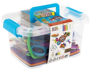 Pudełko na rękodzieło 20x15x12 cm. Ponad 180 różnych elementów, Brokat, nożyczki, kolorowe druciki i pomponiki..