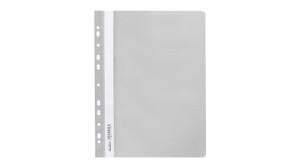 Skoroszyt wykonany z polipropylenu, miękki, przód przezroczysty, tył kolorowy. Europerforacja umożliwiająca wpięcie do segregatora z dowolnym ringiem. Wewnątrz klasyczny mechanizm z wąsem i listwą skutecznie zabezpieczający wpiętą zawartość; wąs o długości 14,5 cm. Na bocznej krawędzi wymienny,...