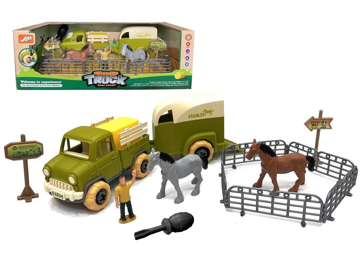 traktor do skręcania, z przyczepą, farma, figurki, ze śrubokrętem; 34x17,5x11,5cm, W/B