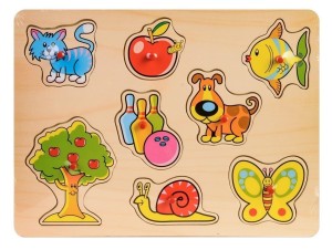 Układanka drewniana na dzieci, rozwija spostrzegawczość i koordynację wzrokowo-ruchową. Puzzle z uchwytami uławiającymi ich przenoszenie. Produkt przeznaczony dla dzieci powyżej 18 miesiąca życia, posiada certyfikat CE