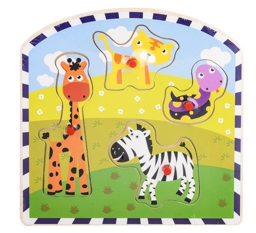 Układanka drewniana na dzieci, rozwija spostrzegawczość i koordynację wzrokowo-ruchową. Puzzle z uchwytami uławiającymi ich przenoszenie. Produkt przeznaczony dla dzieci powyżej 18 miesiąca życia, posiada certyfikat CE